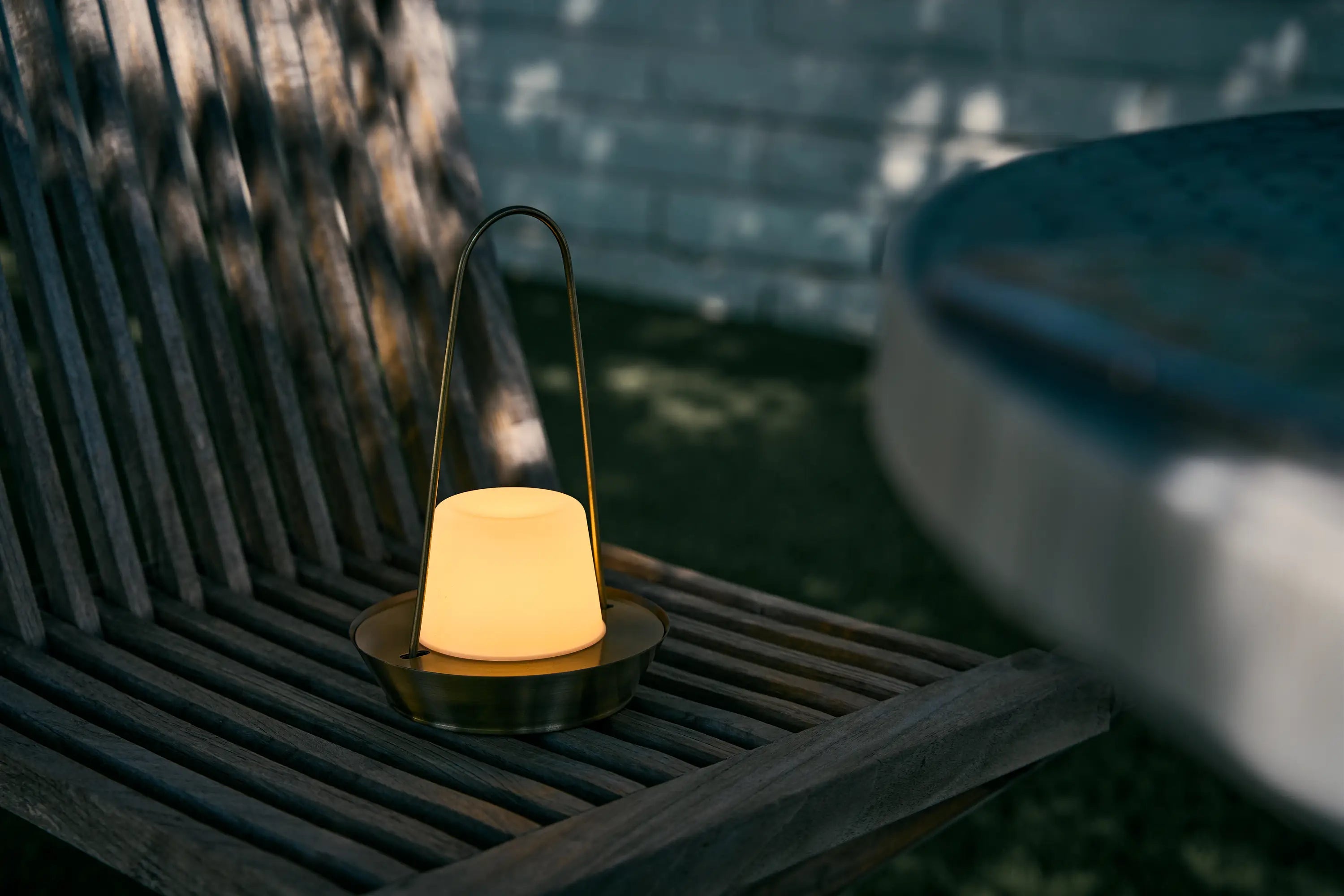 Lightweight, lantern-like, and easy to carry—Canele is your go-anywhere glow. Inspired by the shape of its namesake French pastry, this outdoor-friendly LED lantern features a sculptural ribbed base, curved handle, and warm ambient light. Whether you're hosting under the stars or winding down on the patio, Canele adds charm and light to every outdoor setting.