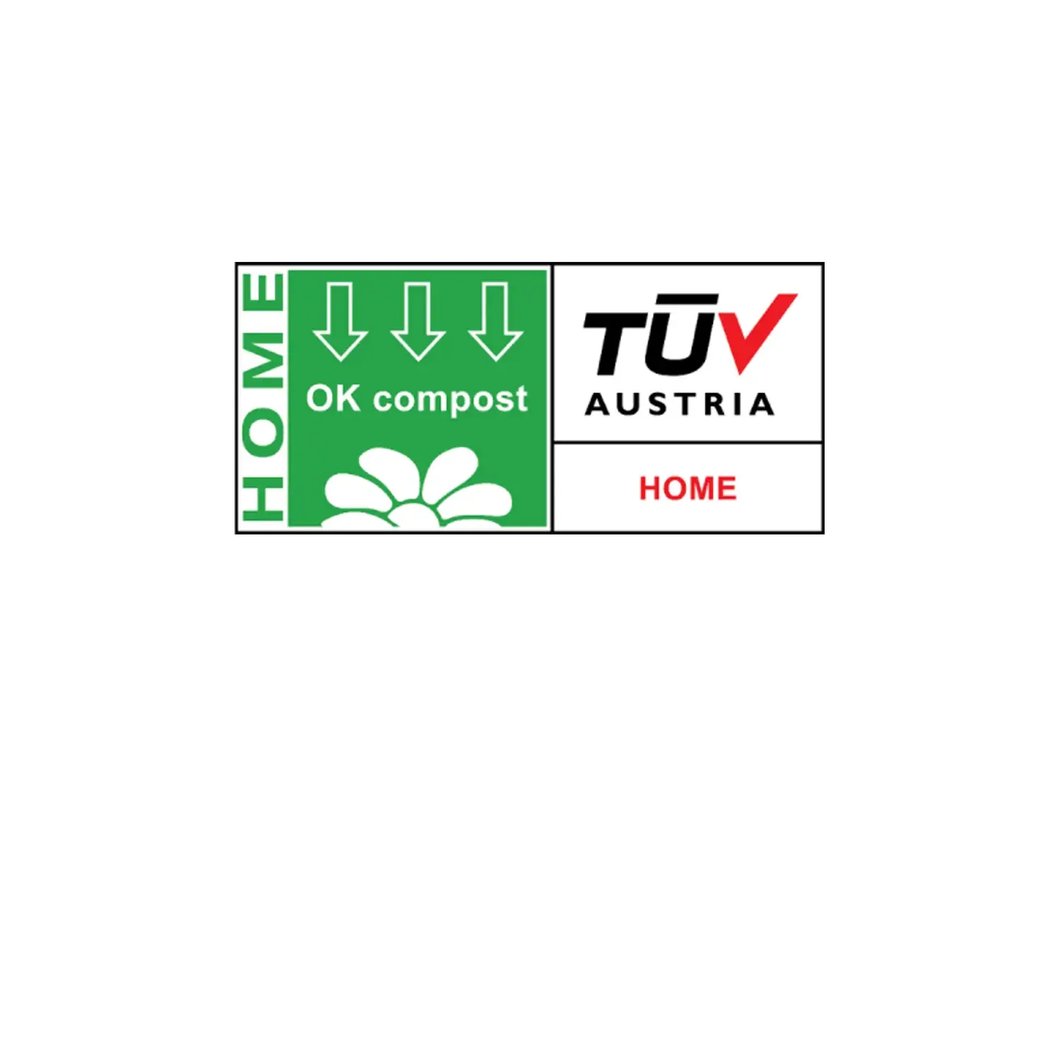 Our products bearing this certification are 100% compostable in home composting units. They decompose effectively even at lower temperatures, making sustainable living accessible for everyone.